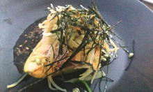 アボカドにpeekytoe crabの身、刻み海苔がかかっていて、ソースもちょっと和風です。何だか懐かしい味。