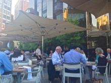 NYの夏は、蒸し暑く、クーラーの利いた場所で食べたいもの。でも、こういう素敵な場所なら、都会のど真ん中でも大丈夫です。