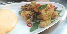 何だか、ここに来ると、いつも頼んでしまう、イカのフライ。バジリコソルトに、ちょっとスパイシーなソースがついてきます。ソースは、ムース風にふわっとなっています。