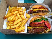 私は、いつもShack burgerを食べるのですが、今日は、ちょっと冒険をして、スモークベーコンとスパイシーペパーの入った"Smoke Shack"バーガーにしました。(写真の右上)