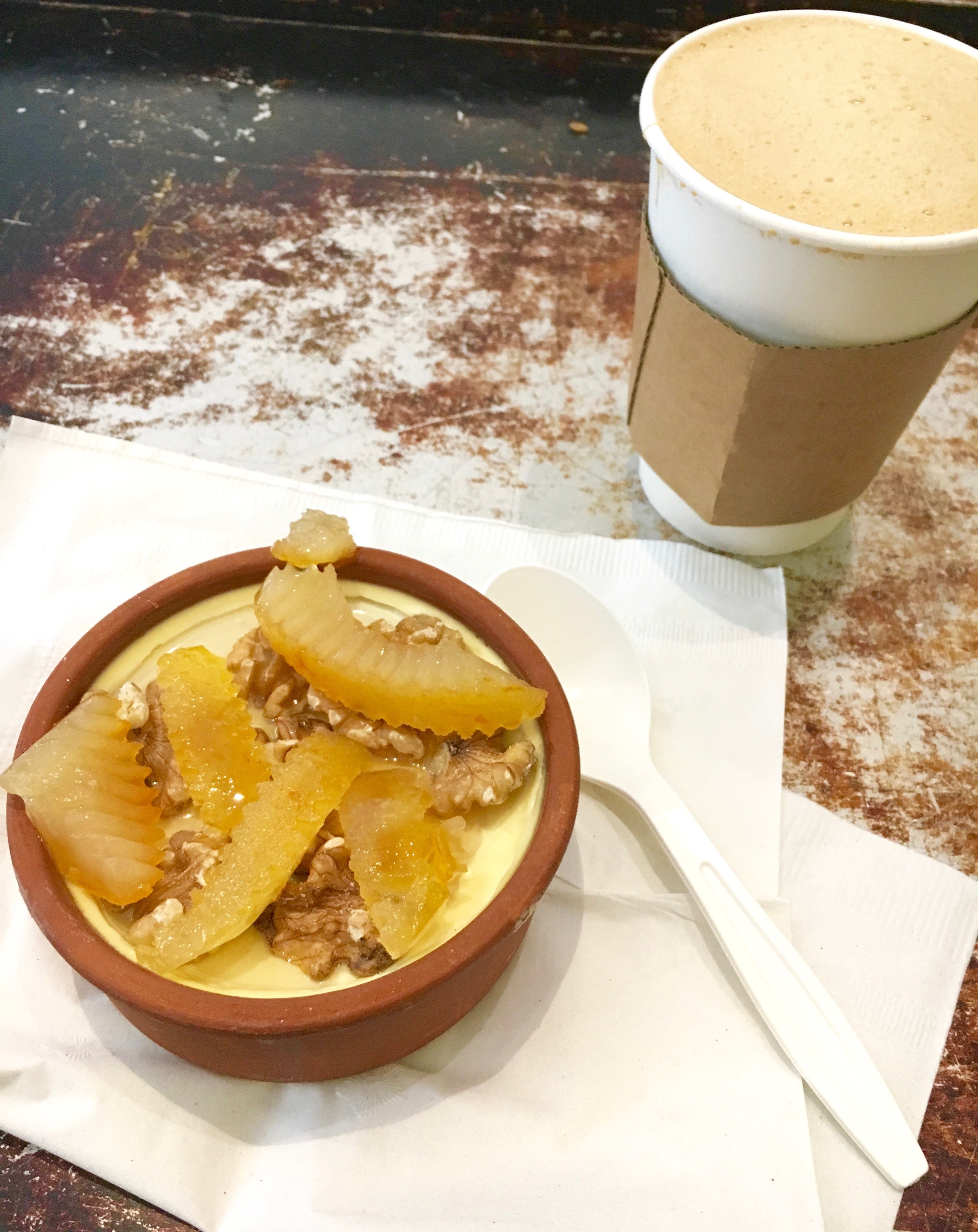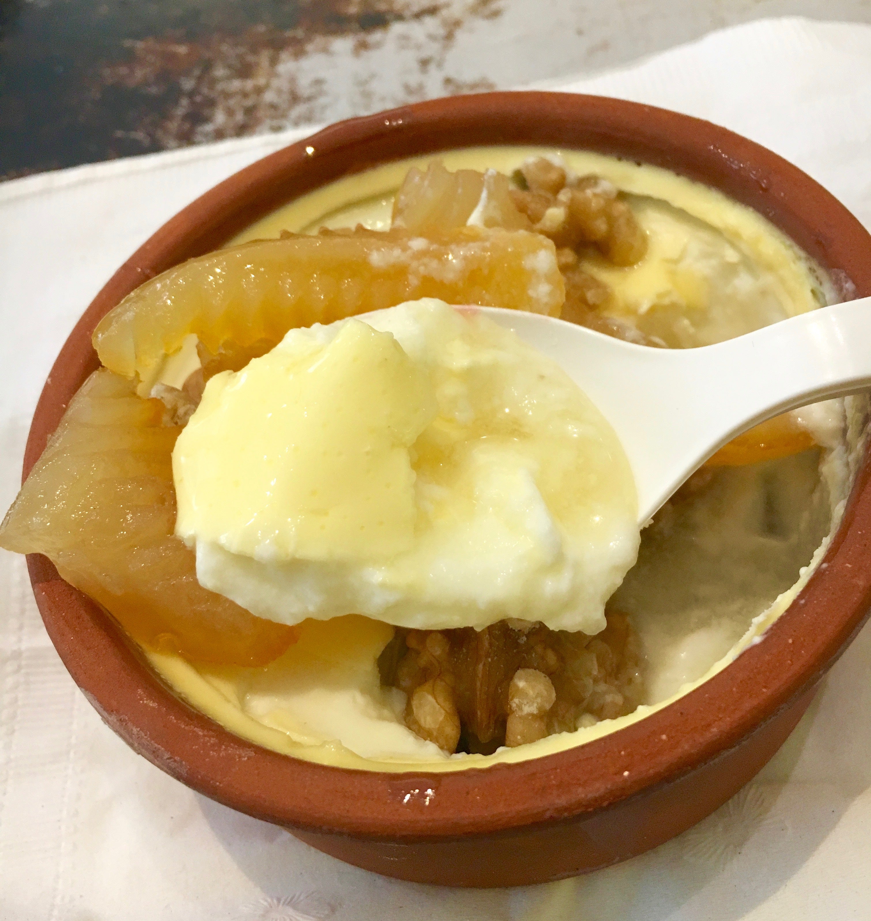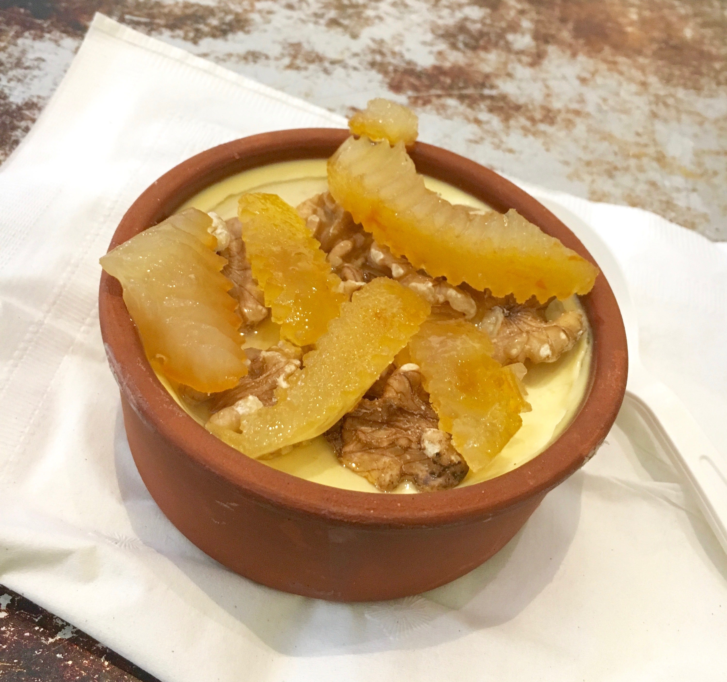 私は、ベルガモットの皮のシロップ漬けとクルミを