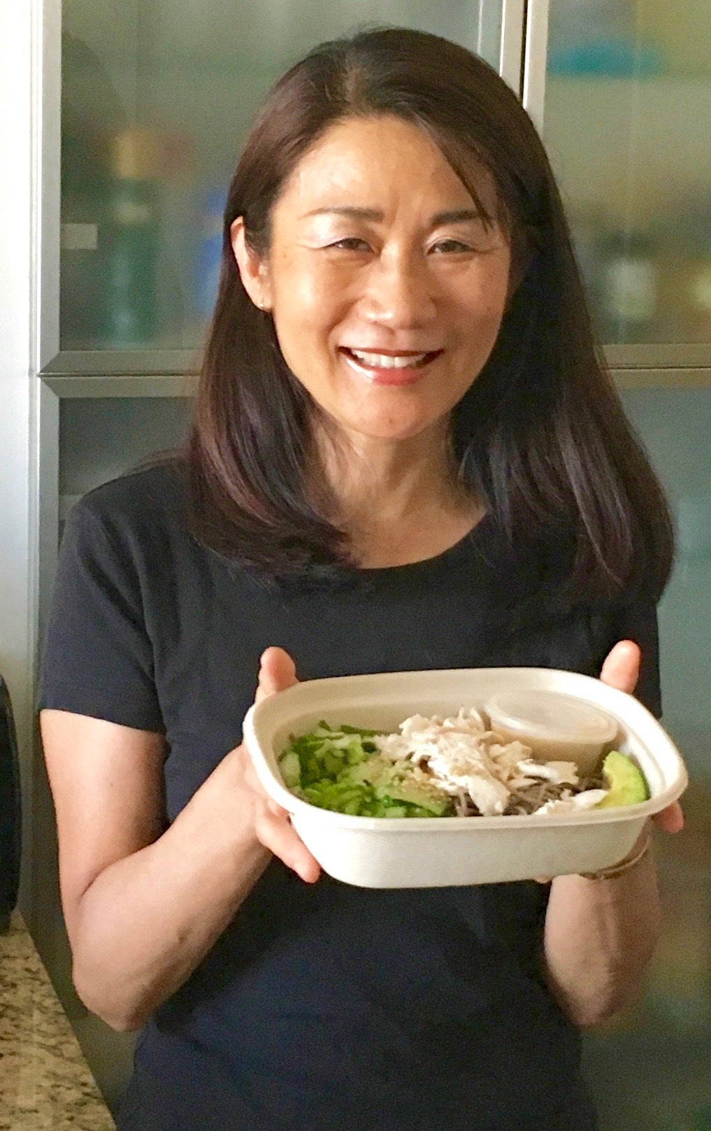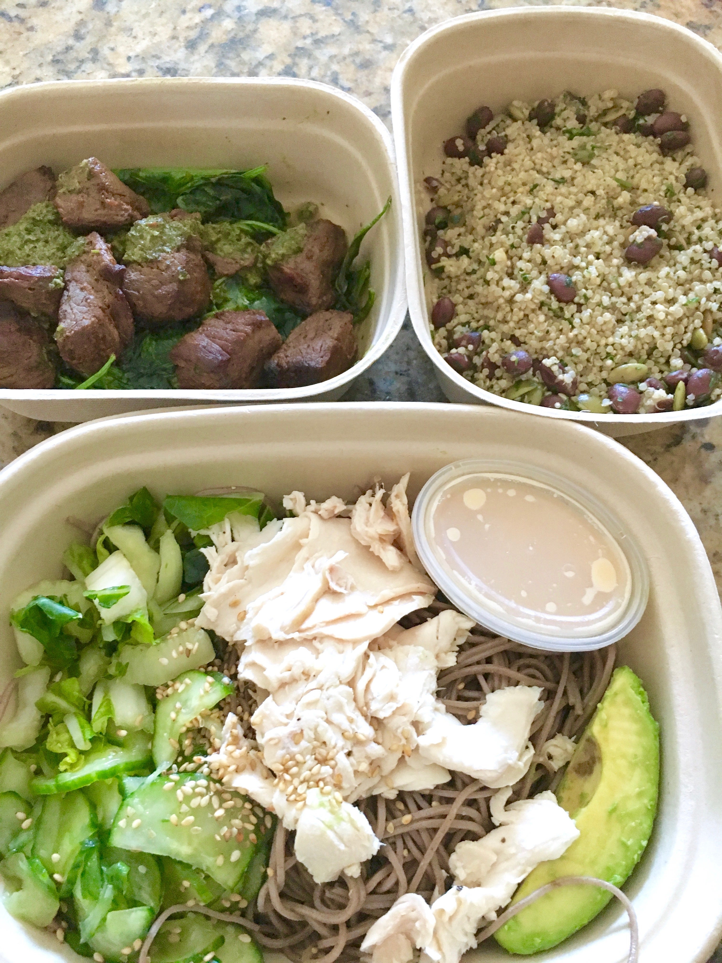 下は、そばサラダ?一応、ポーチしたチキンの