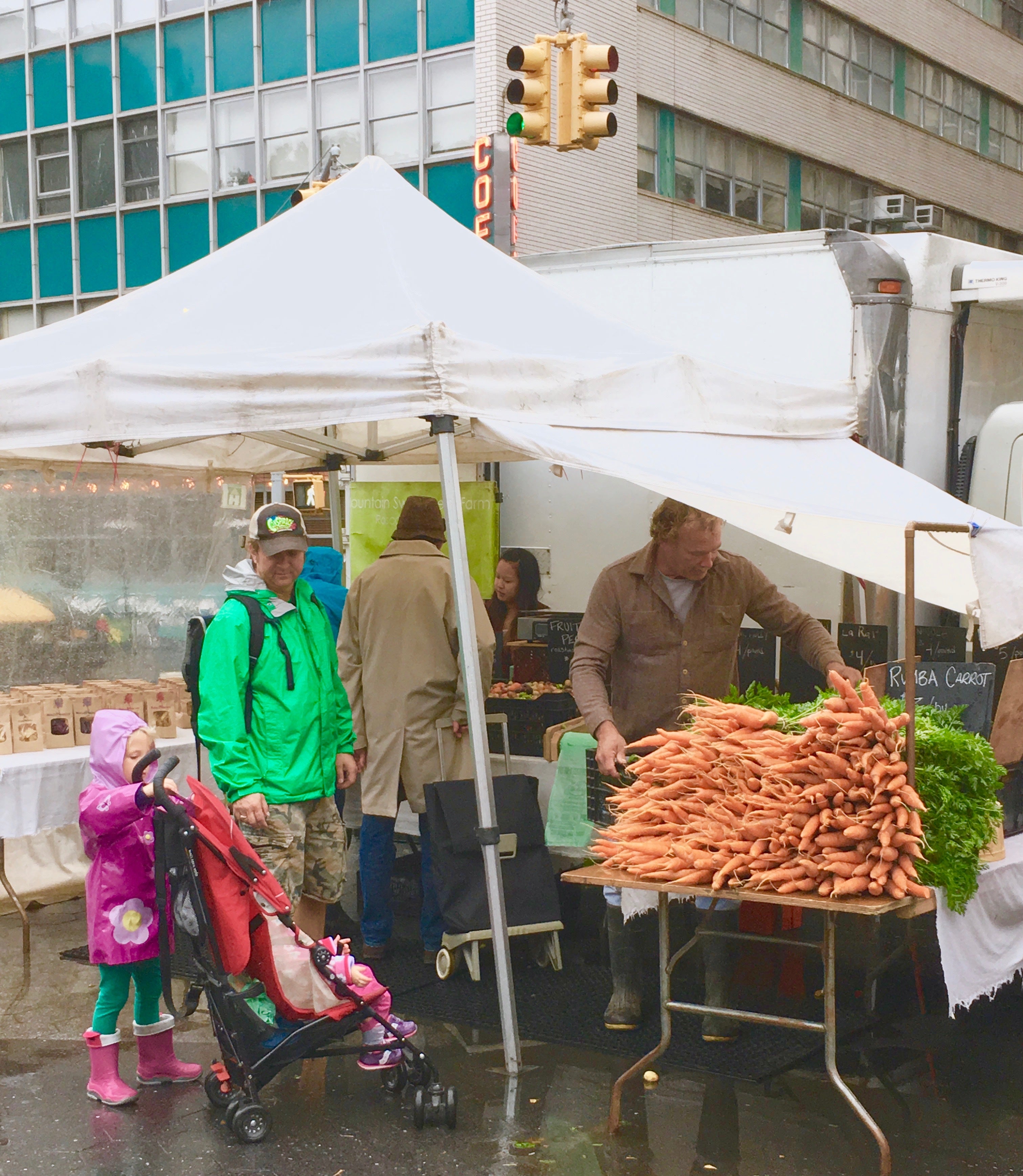 かなり天候が悪くてもいつもグリーンマーケットに