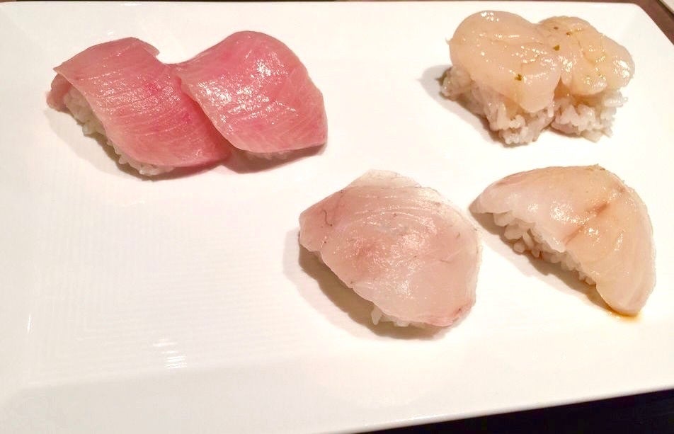 そして、お寿司!左上がalbacore tuna(ビンナガマグロ)、