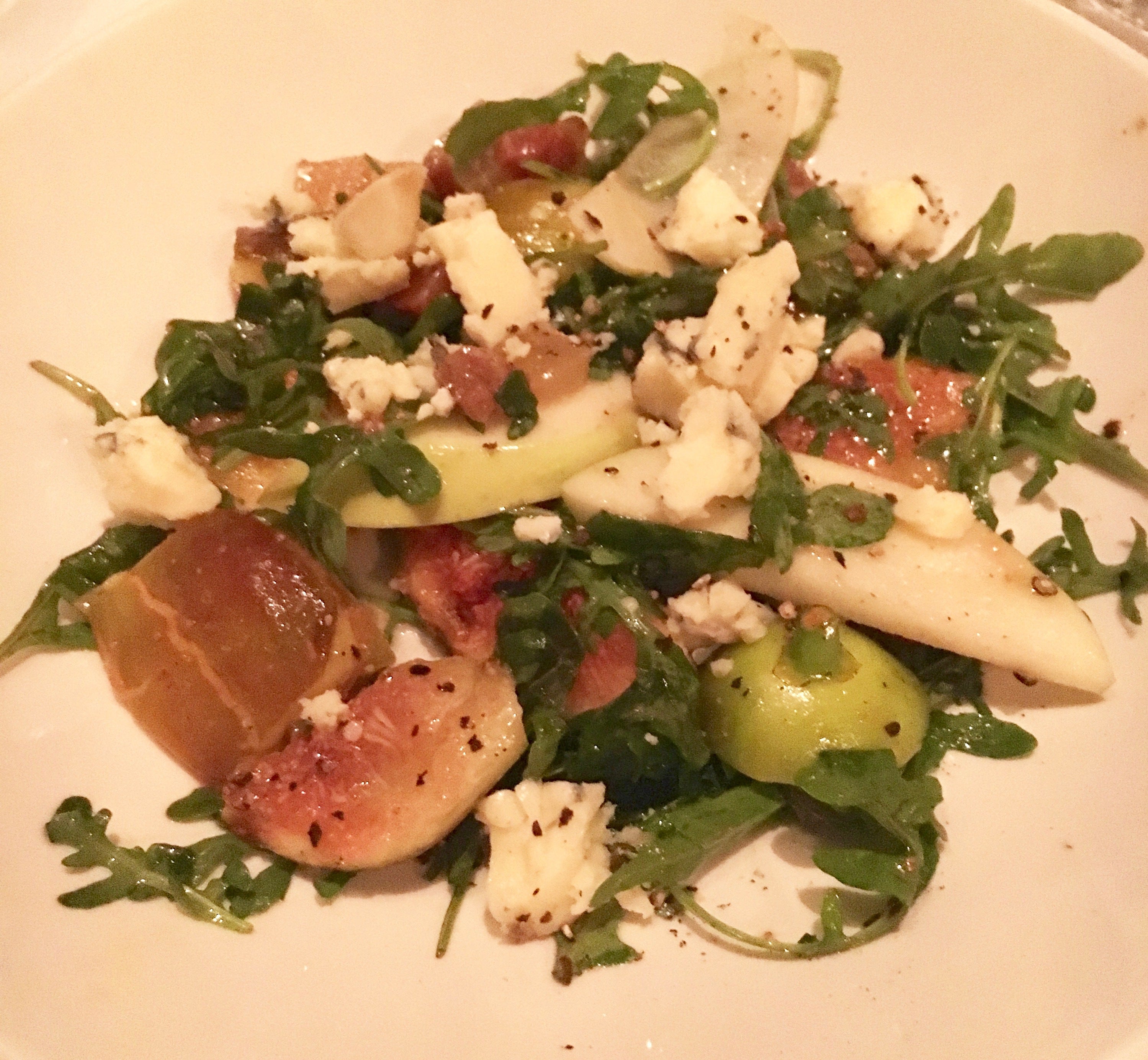アペタイザーは、温かいいちじくのサラダ。いちじく、